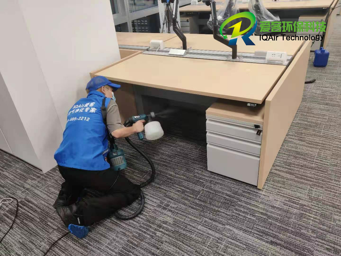 項目概況:本次項目是針對申請LEED認(rèn)證的公司,進(jìn)行的初期空氣治理。主要為項目單位區(qū)域內(nèi)的包括辦公室區(qū)域、獨立辦公室、會議室、茶水間、員工休息區(qū)、前臺以及其他區(qū)域的天花板、地面、墻面、辦公桌椅、儲物柜等多方位,使用愛洛客光觸媒360度無死角的噴涂。并選用(24組)Blueair空氣凈化機(jī)對所有區(qū)域的全覆蓋,達(dá)到持續(xù)凈化效果。