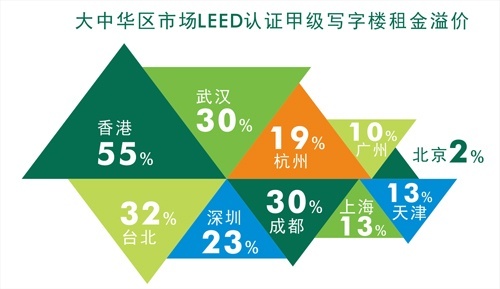 除了以上的優(yōu)點(diǎn)之外,據(jù)調(diào)查LEED認(rèn)證寫字樓對(duì)國際化企業(yè)的吸引力高于非LEED認(rèn)證寫字樓的1-1.5倍。其租金溢價(jià)率也普遍高出10%-30%,因此從租金、出租率、吸引優(yōu)質(zhì)租戶等多方便都證明了獲得了LEED認(rèn)證的寫字樓的競爭力。這也是為什么LEED認(rèn)證如此受企業(yè)追捧的原因。
