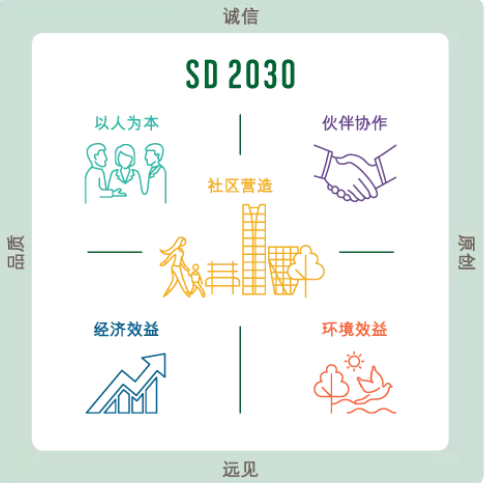 企業(yè)可持續(xù)發(fā)展五大策略支柱,分別是社區(qū)營造、以人為本、伙伴協(xié)作、環(huán)境效益和經(jīng)濟效益。這五點,其實與LEED認(rèn)證的綠色理念也極為契合。