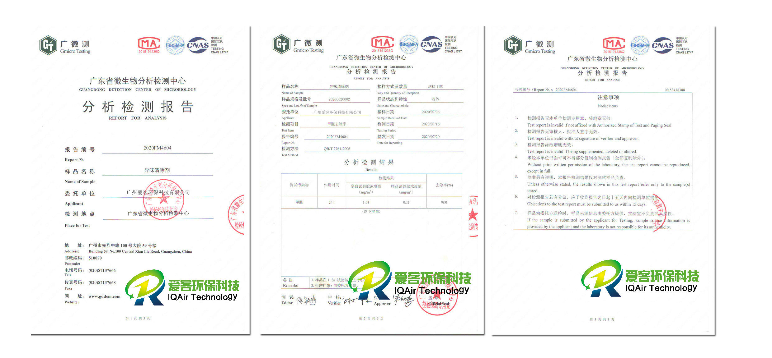 異味清除劑檢測報告