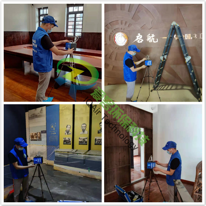 愛客工程師們對紀(jì)念館展區(qū)進行室內(nèi)空氣取樣檢測