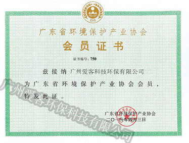 廣東省環(huán)境保護(hù)產(chǎn)業(yè)協(xié)會會員證書
